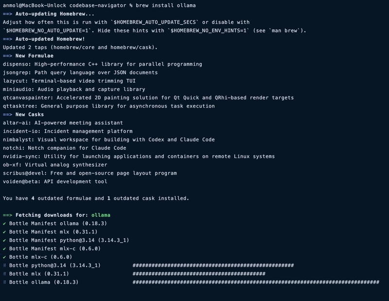 The live dependency graph visualization is a killer feature for onboarding onto unfamiliar codebases. I work with a lot of client codebases and the first 2-3 hours are always spent just understanding the architecture and file relationships. Having a visual map that shows how everything connects would cut that time dramatically. The local LLM support is a smart move too — a lot of organizations I work with can't send proprietary code to external APIs, so being able to run inference locally against Ollama makes this actually usable in enterprise settings where security policies are strict. Would be interesting to see this integrated with MCP so AI coding agents could use it as a tool to understand codebase structure before making changes.