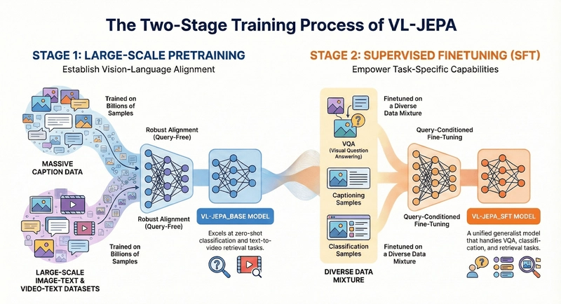 VL-JEPA may be more efficient than traditional multimodal models because it does not spend computation on generating every token. In tasks such as classification, video understanding, video search, and visual question answering, this approach can be lighter and faster. The architecture is also more universal: the same model can solve classification, search, and question-answering tasks without training a separate model for each one.