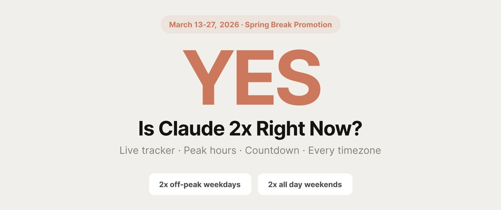 If you're on the US West Coast, mornings (5–11 AM) are peak. Schedule your heavy Claude Code work for afternoons and evenings. Everyone else — your normal work hours are probably already 2x.